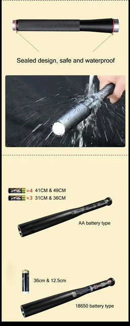 LED Baseball Bat Aluminium Alloy Torch for Emergency Self Defense Anti Riot Equipment Waterproof Self Defense Flashlight Stick